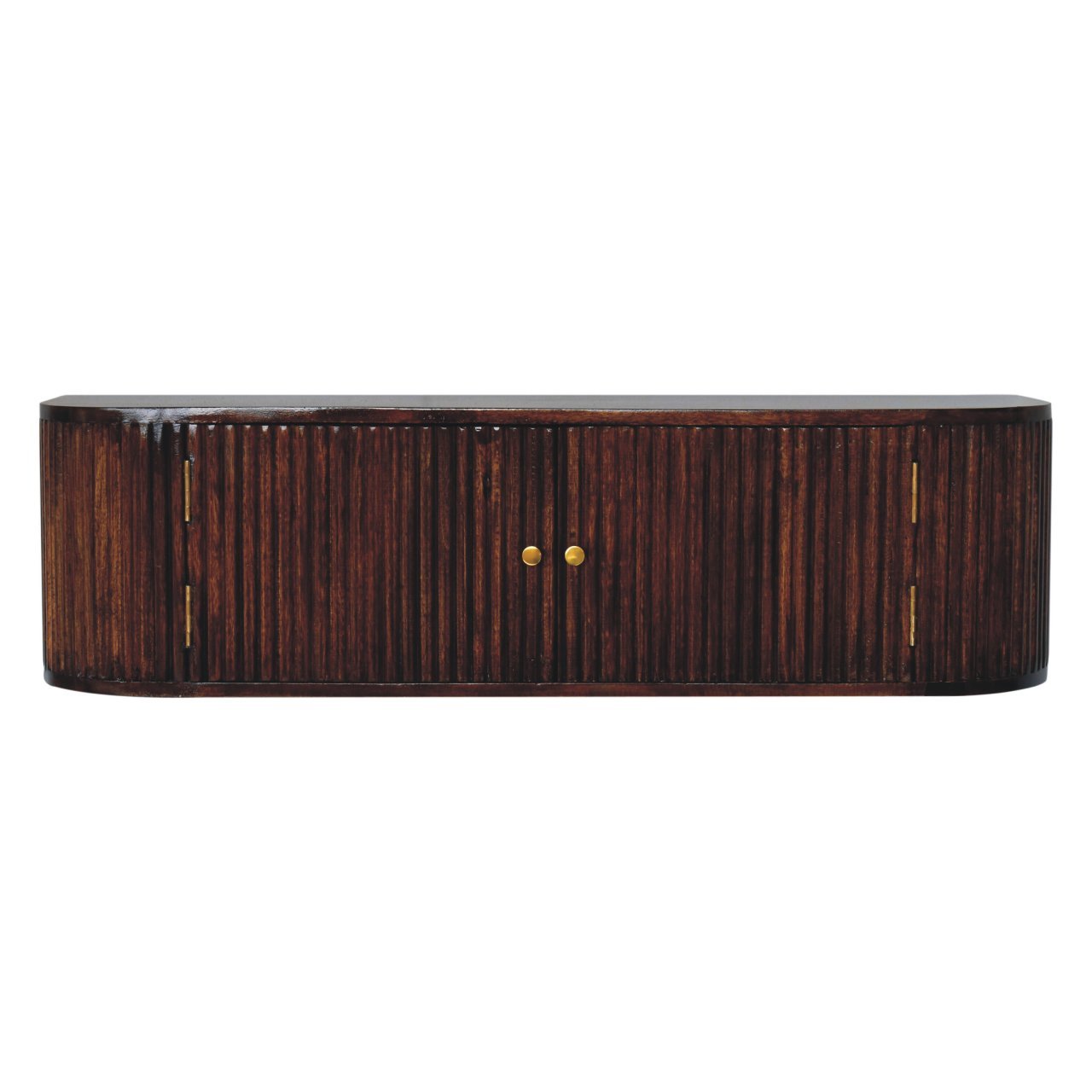 Sleek and sculptural, the Chunky Wall-Mounted Cabinet is a bold design statement for modern interiors. Handcrafted from solid wood, it features a slatted facade and curved edges for a soft yet structured silhouette. The wall-mounted design adds a floating elegance, while brass-toned knobs bring a refined accent. Ideal for use as a bedside, media unit, or hallway console, it combines storage and style with effortless sophistication.