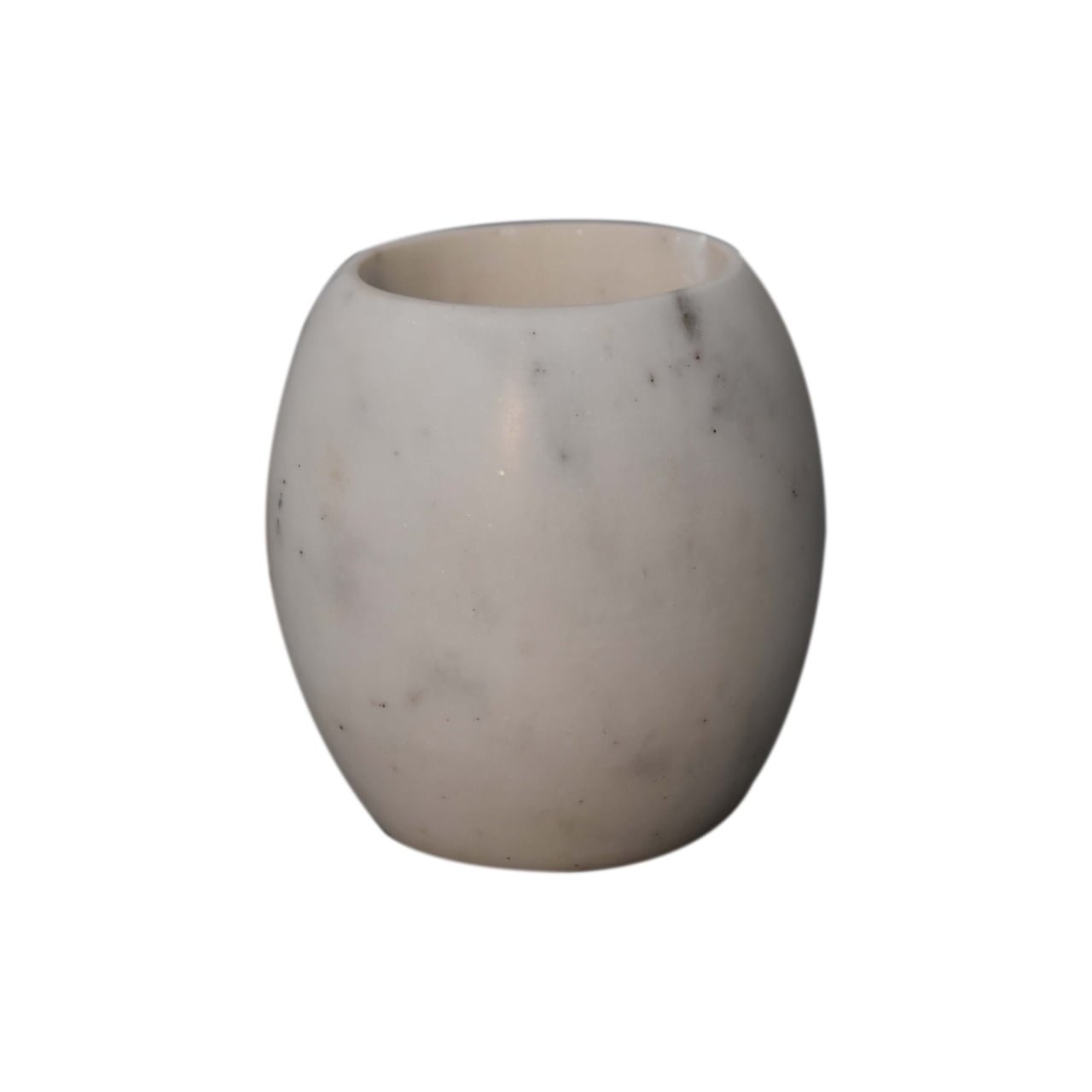 This 5-piece bathroom set is made of round polished white marble. Consisting of a soap dish, toothbrush holder, a soap dispenser with a metallic dispenser head and cosmetic box with lid. A beautiful set of accessories for your bath as well as making a unique gift choice. Expect differences in texture, color, grains etc., as this product is extracted from a natural source. This is a natural configuration and should not be considered as a defect.