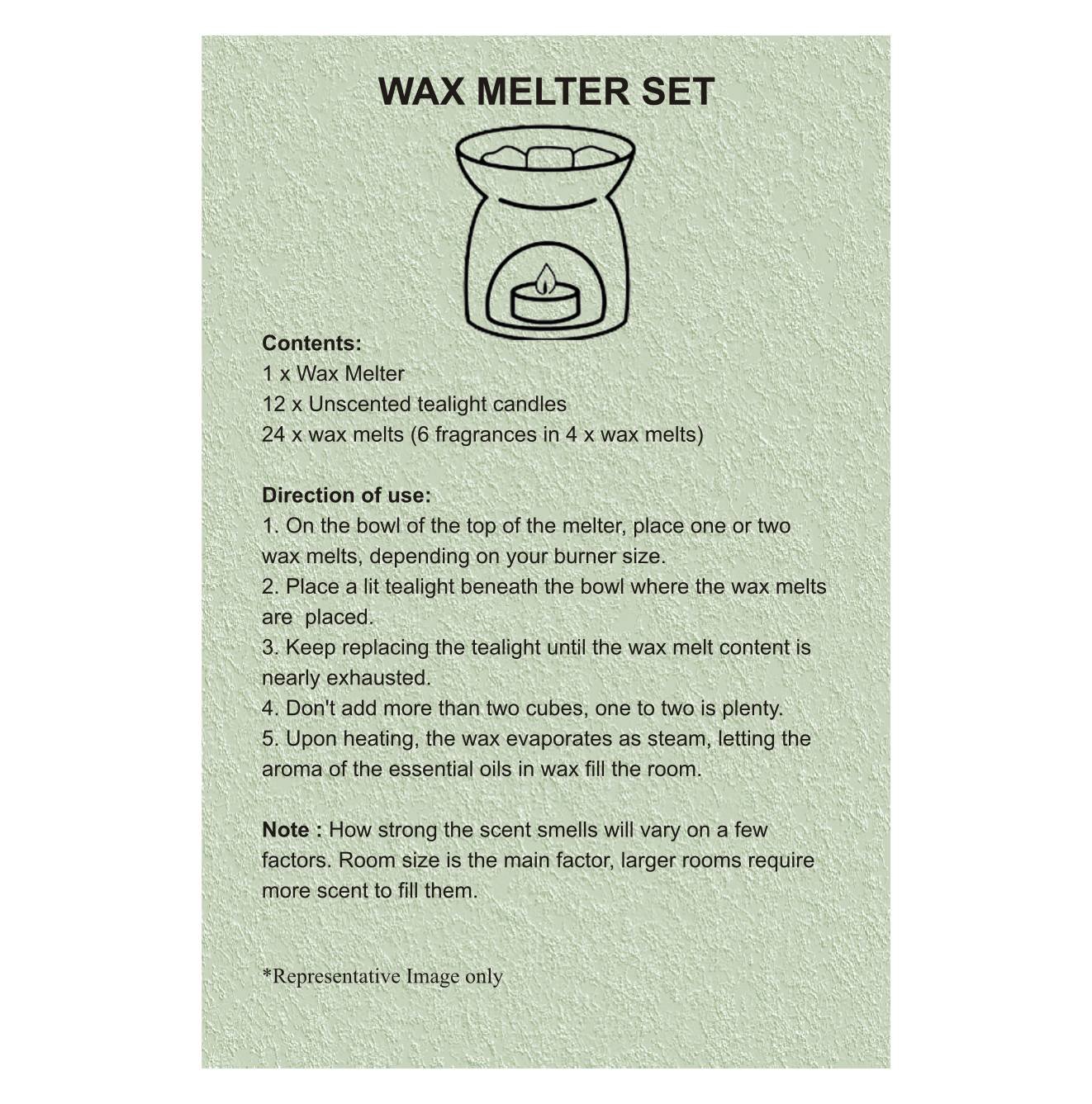 This beige ceramic wax burner is simple in design and perfect for any room decor. The wax burner is complete with a bowl, deep enough for two wax melts to ensure maximum scent. Perfect for use in the living room or bedroom, and makes an ideal gift for friends and family.The set includes a wax melter, fragrant wax melts in Lavender, Jasmine, Citronella, Summer Tides, Rose and Lemongrass, and unscented tealight candles. Simply pop your the wax melt in the top and light a tealight in the base to let relaxing fragrances infuse your home.